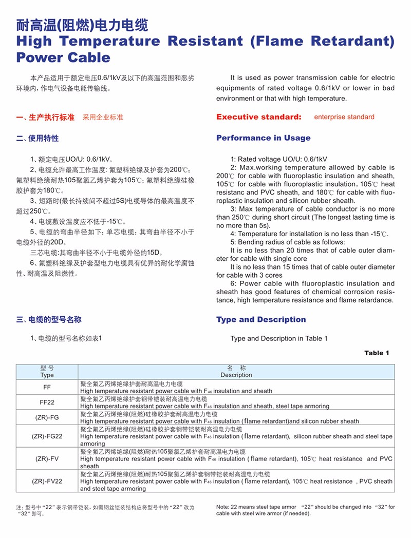 耐高温(阻燃)电力电缆